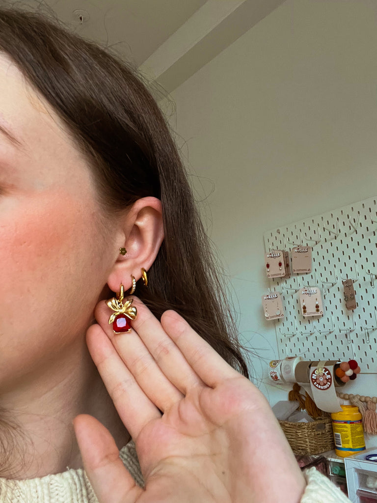 To clean your Noelle Earrings, wipe with a lint-free jewelry cloth. If makeup gets on the earring, wipe with a makeup wipe.