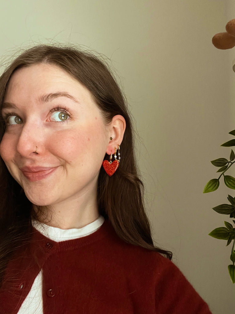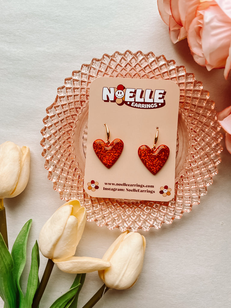 Sparkly Red Heart Earrings