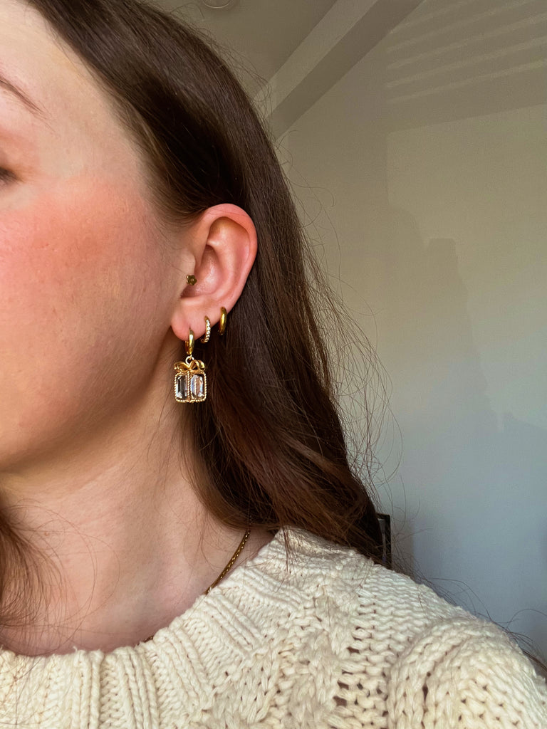 To clean your Noelle Earrings, wipe with a lint-free jewelry cloth. If makeup gets on the earring, wipe with a makeup wipe.